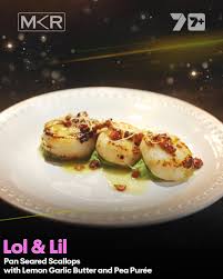 1. Жареные гребешки с лимонно-чесночным соусом и гороховым пюре